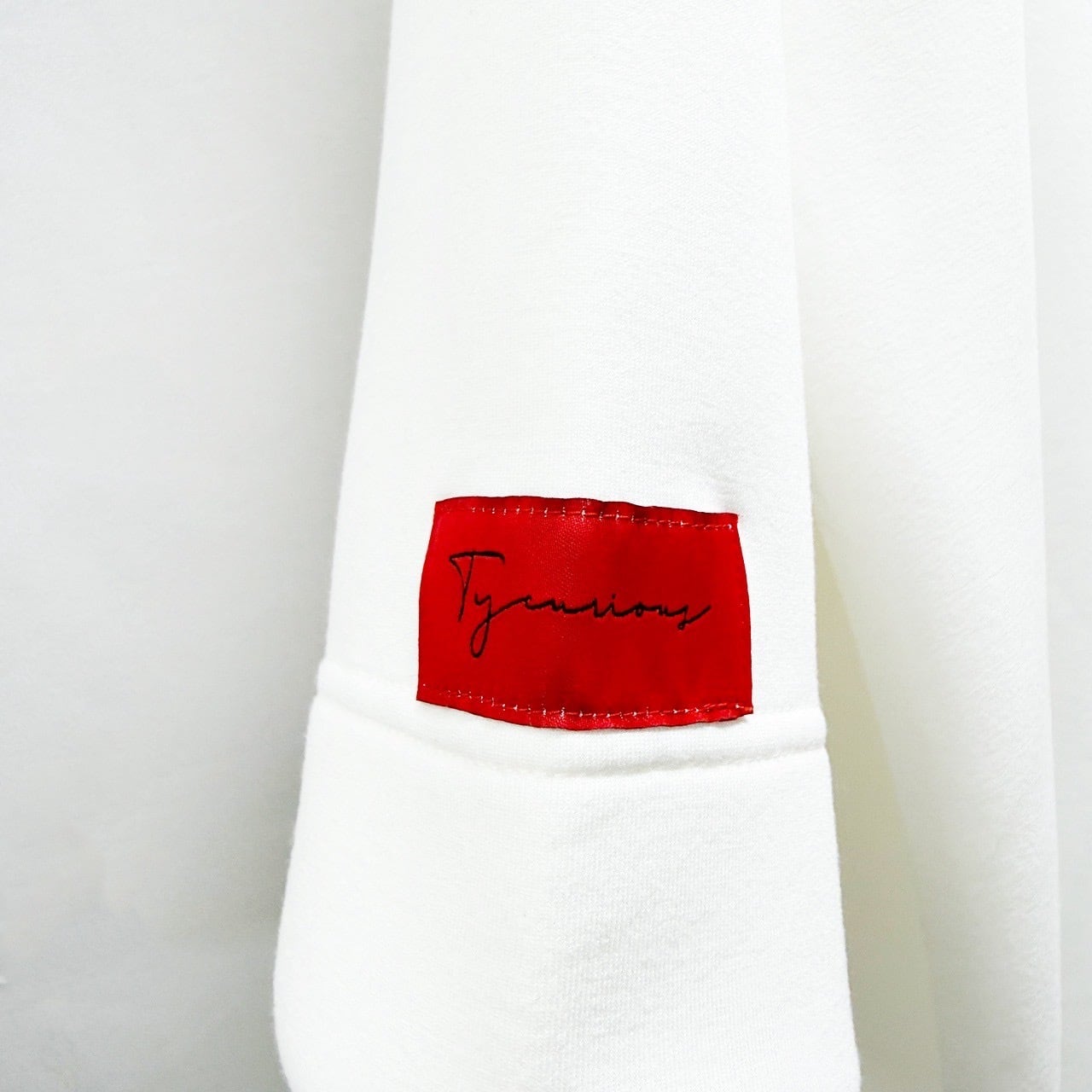 ブランドのアイコンとなる赤ベースのタグを袖に取り付けております。