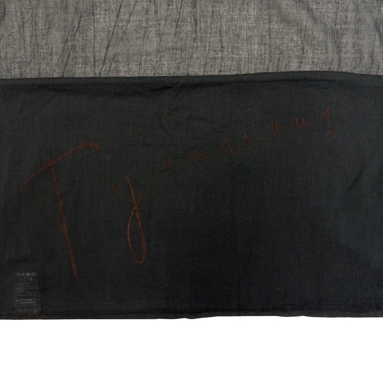 ブランドロゴを大きくプリントしたスカーフ。